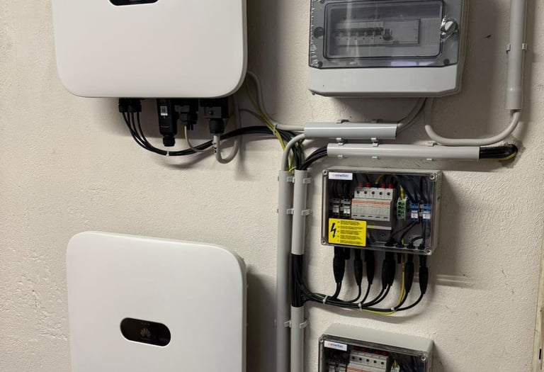 Installation von Photovoltaikanlagen überwiegend mit Speicher und Backup-Funktion.